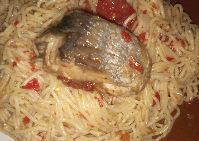 Recipe of Award-winning Jollof spaghetti and cooked fish