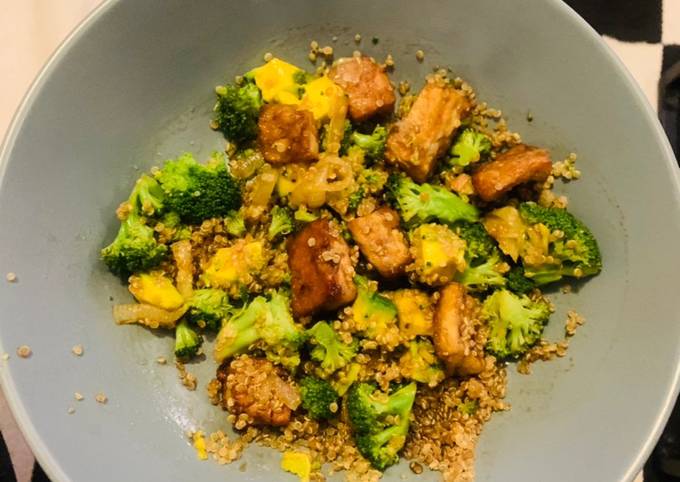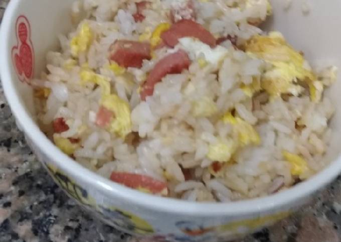 Recipe of Quick Rice with Salami, Soy sauce, and Mashed Egg