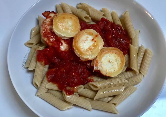 Simple Way to Prepare Super Quick Homemade Baked Chicken and Goats Cheese served with whole grain pasta