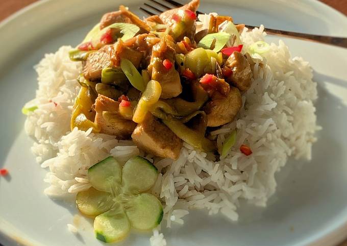 Recipe of Speedy Sweet and sour chicken with egg fried rice(chinese dish) and mint mojito(drink)