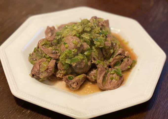 Easiest Way to Make Ultimate Chicken Hearts Yakitori style (no skewer) Leek Green on top