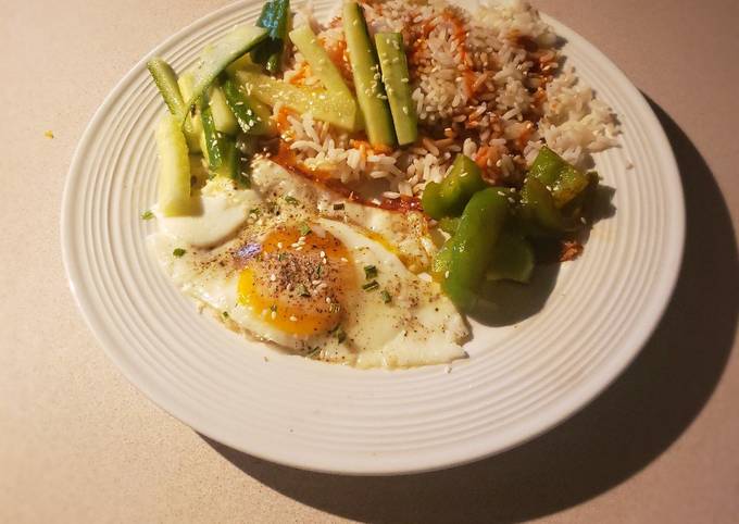 Step-by-Step Guide to Make Any-night-of-the-week Rice with green veggies and a fried egg