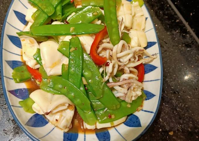 Simple Way to Prepare Homemade Stir Fry Squid with Flat Green Beans